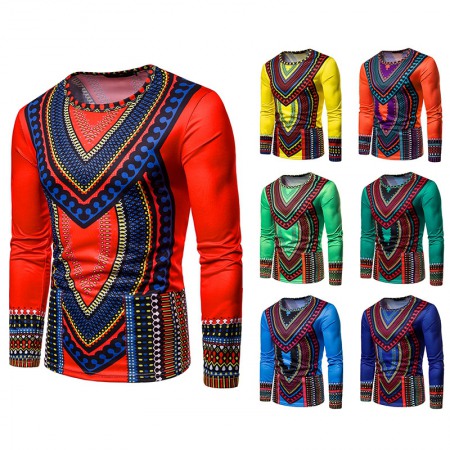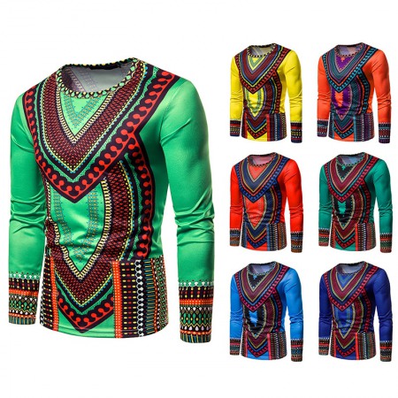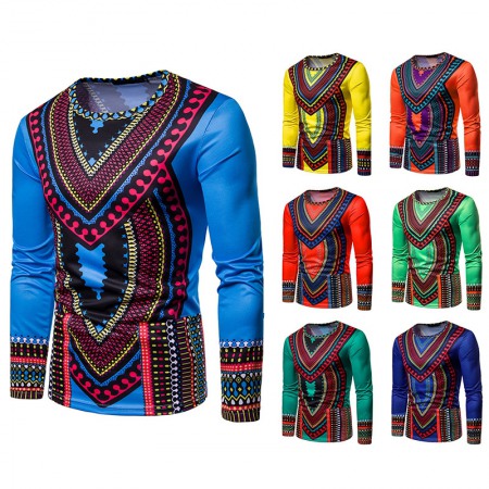Men's 3D Clan Style Multicolor Round Neck Long Sleeve Printed T-Shirt