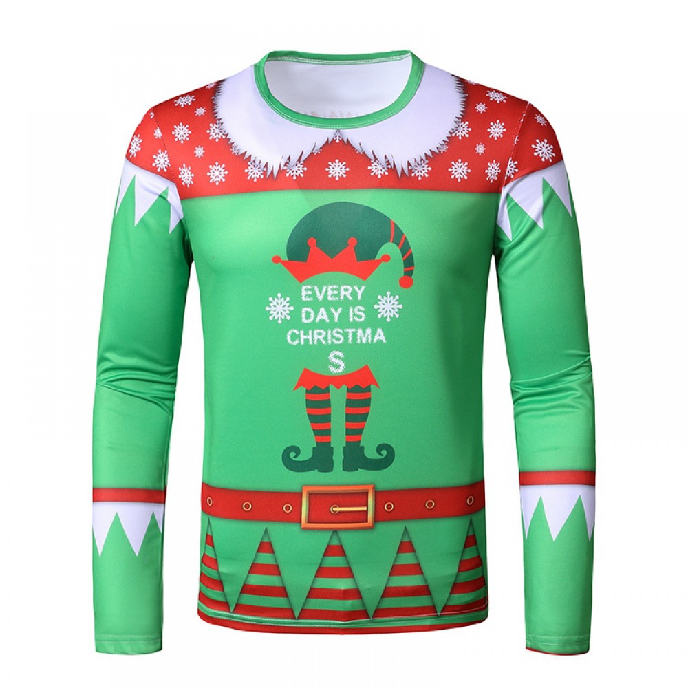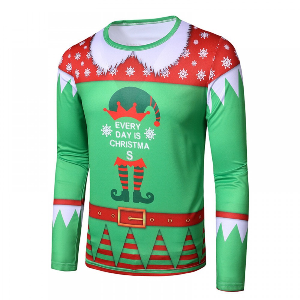 New 3D Personality Printing Fashion Men's Christmas Long Sleeve T-Shirt