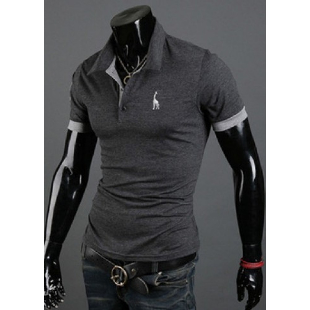 New Short-Sleeved Solid Color Embroidery Men's Slim Casual Loose Short-Sleeved T-Shirt