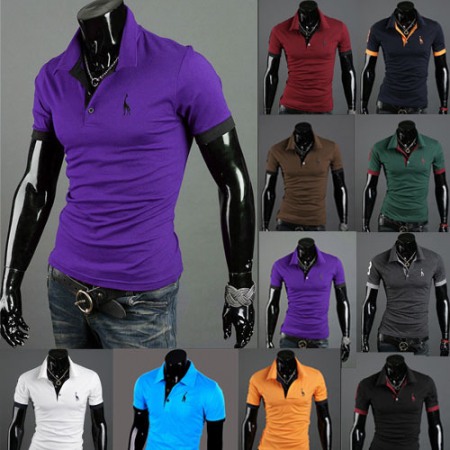 New Summer Men's Short-Sleeved T-Shirt Mens Contrast Striped Slim Casual T-Shirt