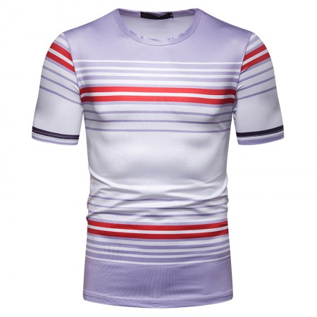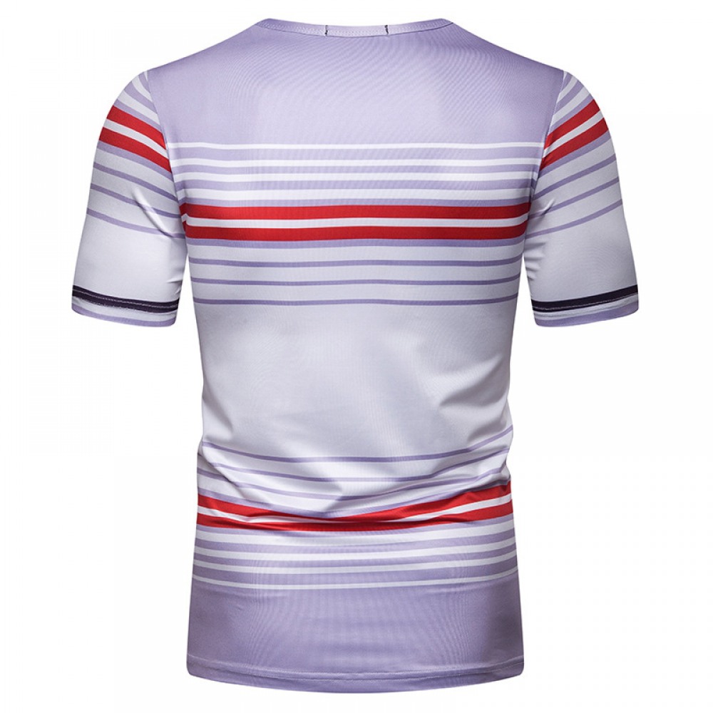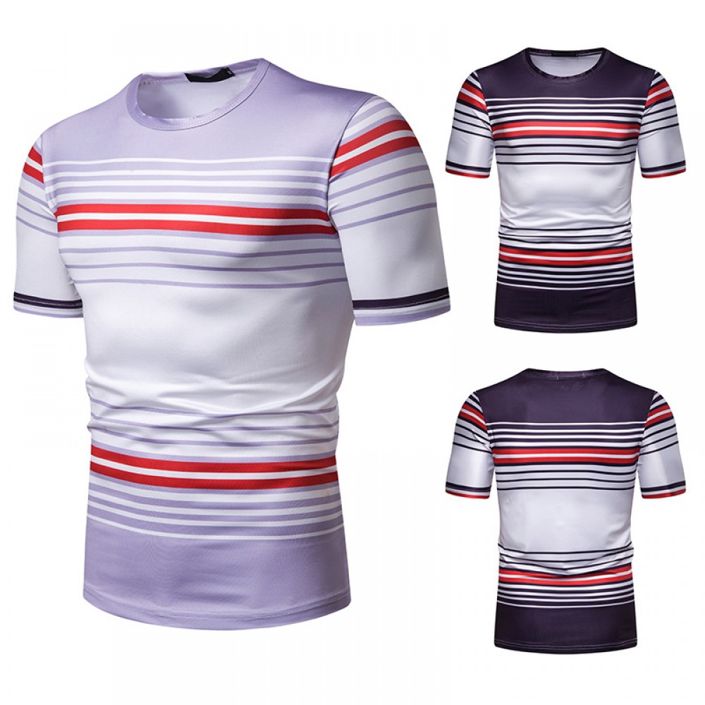 Summer Men's Short-Sleeved T-Shirt Mens Contrast Striped Slim Casual T-Shirt